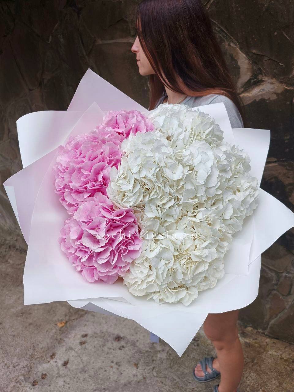 Масштабная композиция из ста одной кустовой пионовидной розы занимает всё внимание. Множество бутонов с волнистыми лепестками создают живую фактуру и впечатляющее присутствие в любом пространстве.