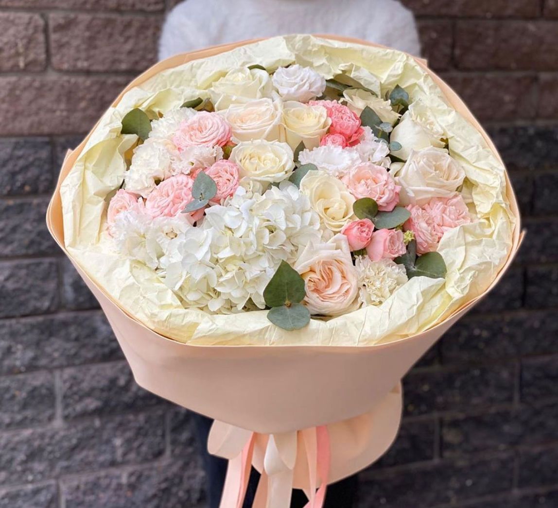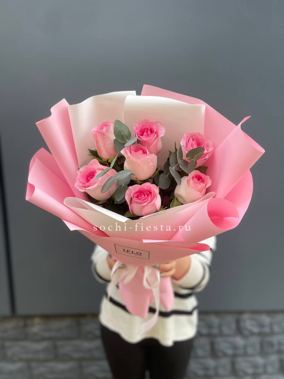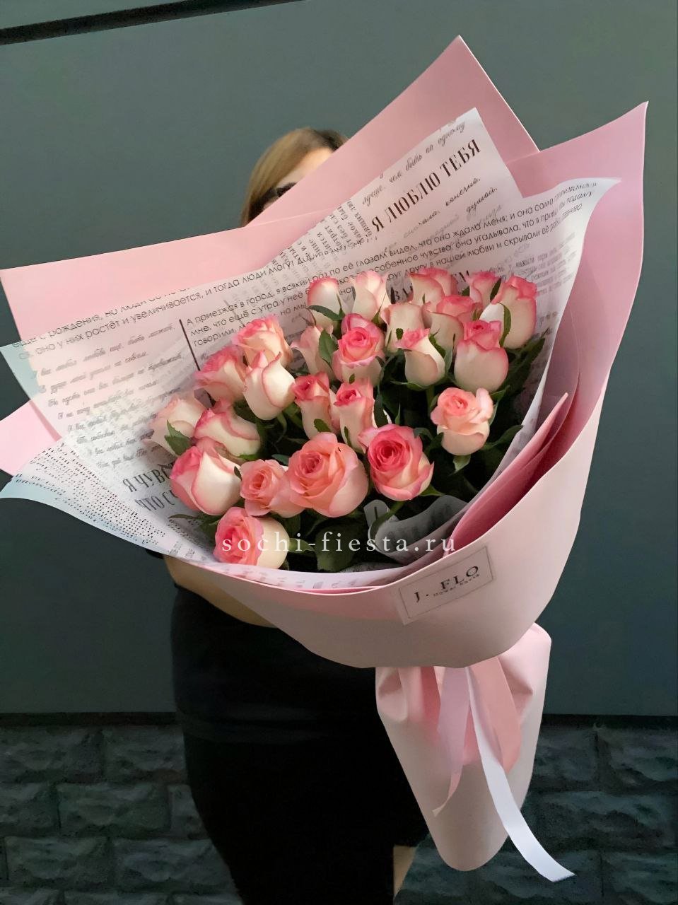 Пятьдесят одна роза насыщенного красного оттенка собрана в плотную композицию. Упаковка мягко обрамляет бутоны, сохраняя естественную форму и создавая цельный силуэт.
