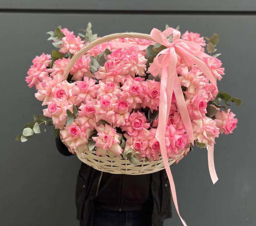 То самое «облако» нежности, о котором мечтает каждая! Эта огромная корзина французских роз поражает своим объемом и воздушностью. Специальная техника выворачивания лепестков превращает каждый бутон в пышное совершенство. Это не просто подарок, а масштабный жест любви и обожания, который точно запомнится надолго.
