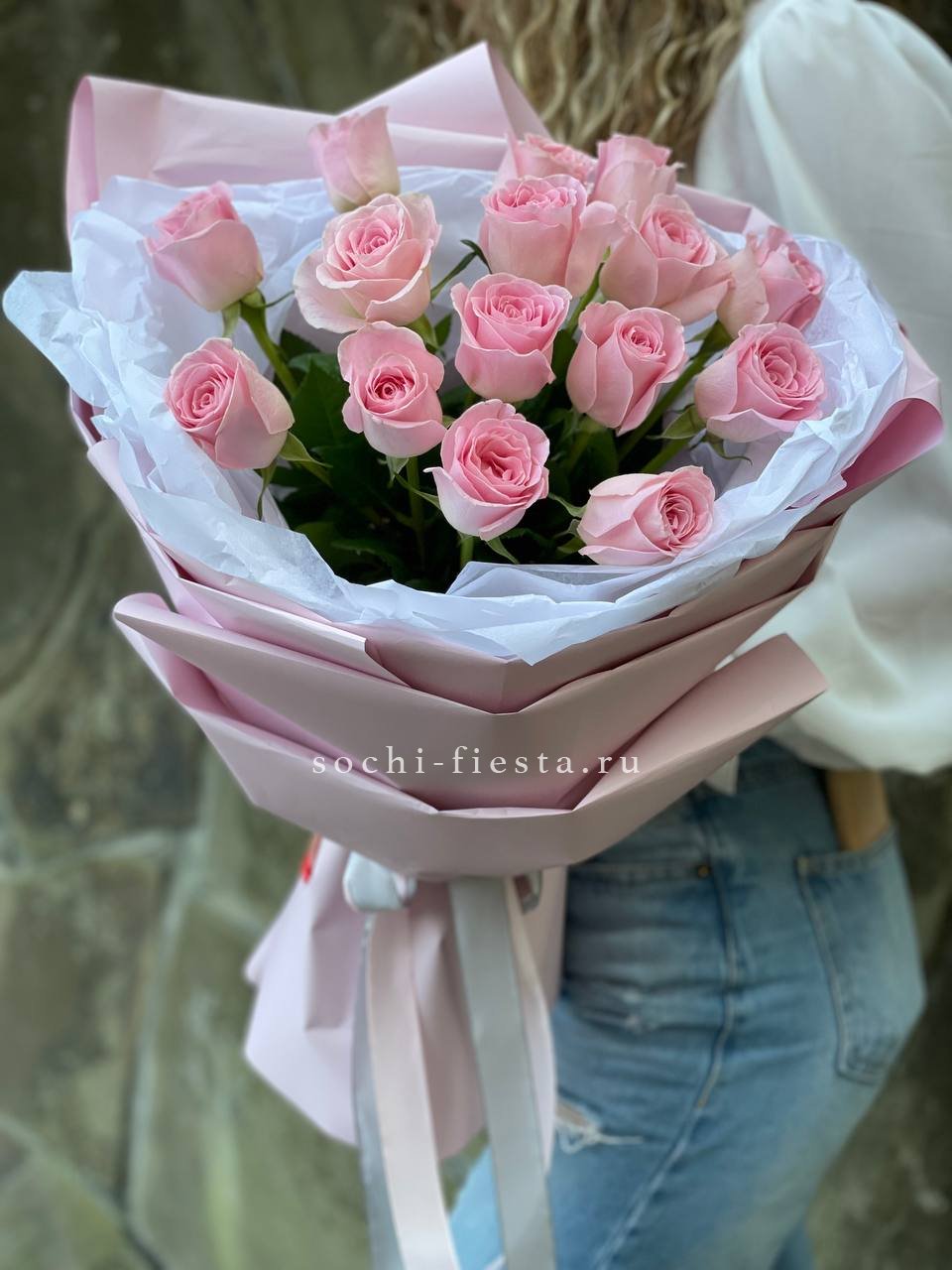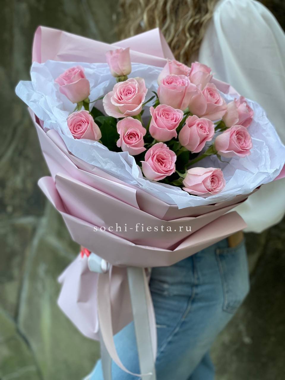 Букеты из розовых роз
