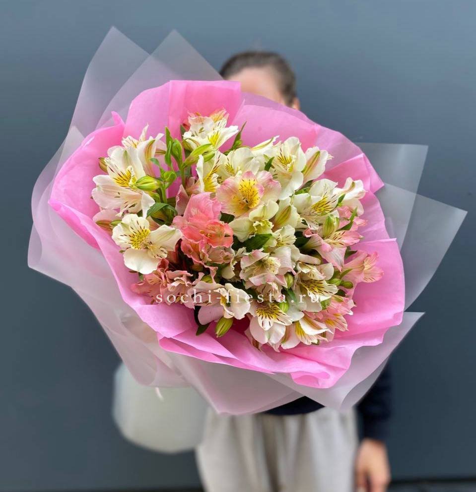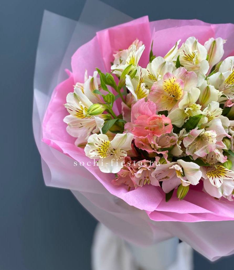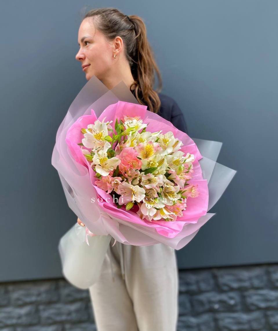 Букет Cherry сочетает насыщенные вишнёвые тона с нежными переходами на лепестках. Тринадцать веток создают компактную форму с выразительным цветовым акцентом.