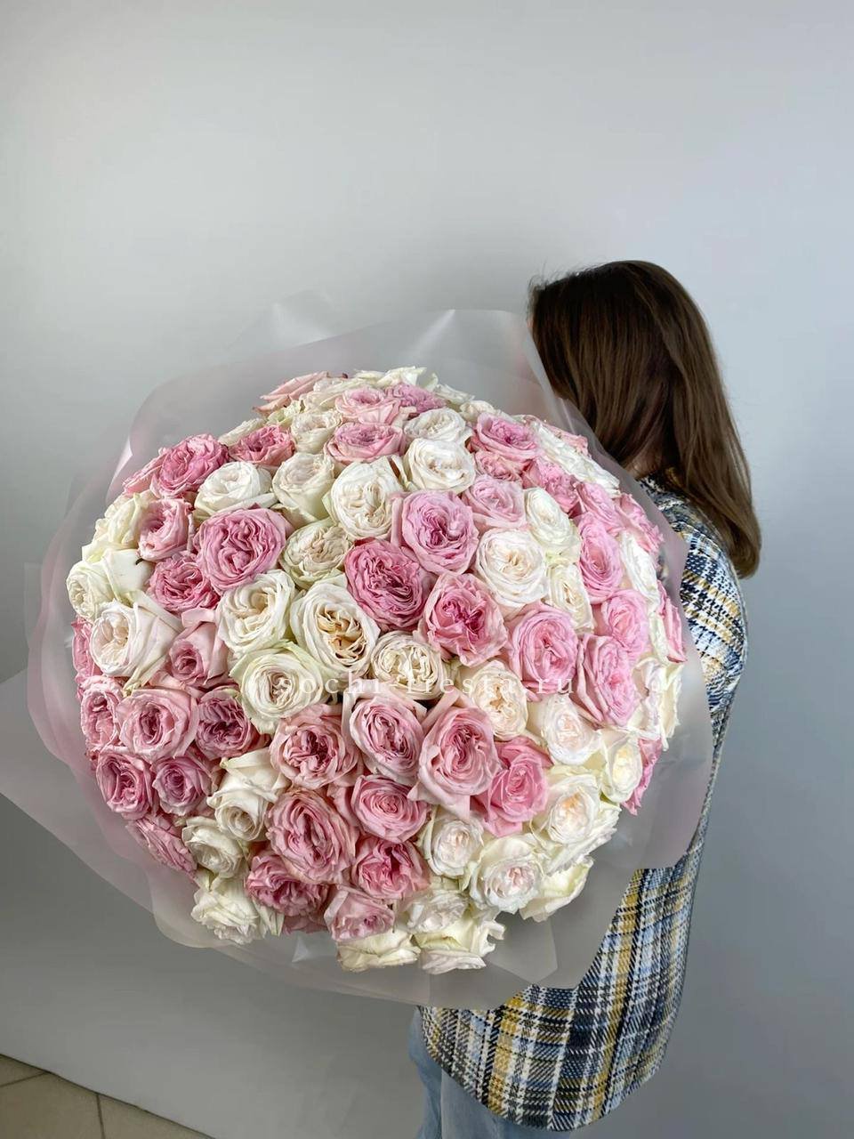 Девятнадцать соцветий гортензии собраны в объемную композицию с естественной воздушностью. Каждая головка раскрывается множеством мелких лепестков, создавая плотное цветовое облако.