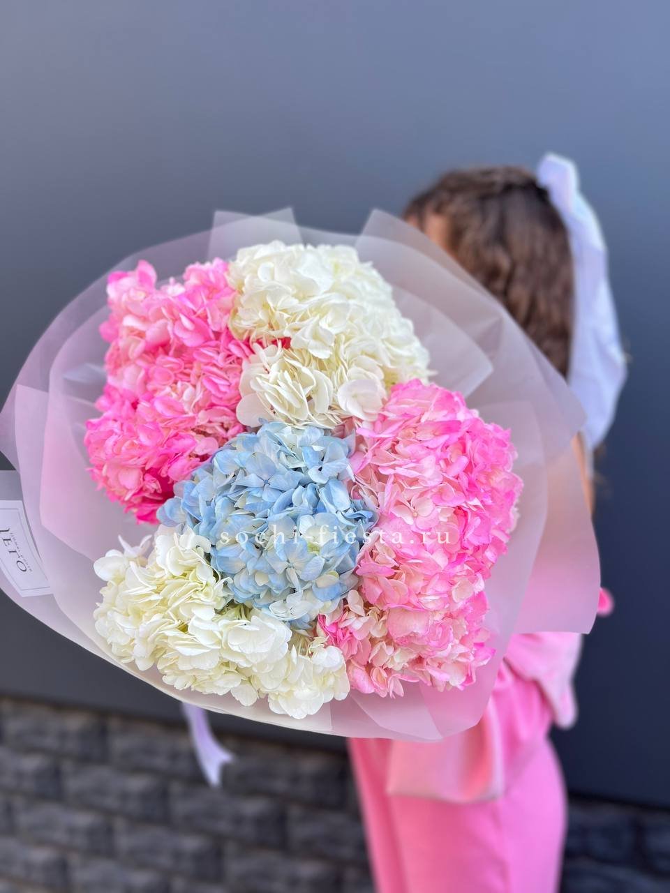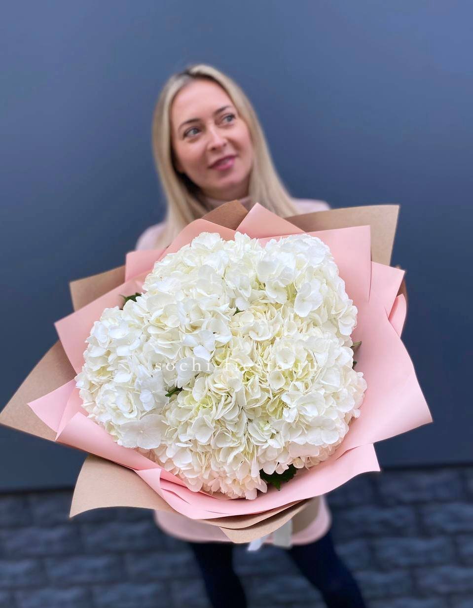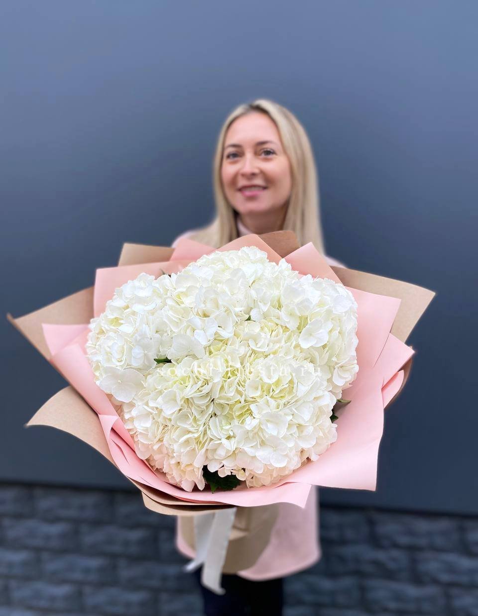 Для заказа товара "Букет из трёх белых гортензий" с доставкой в Невинномысске нажмите