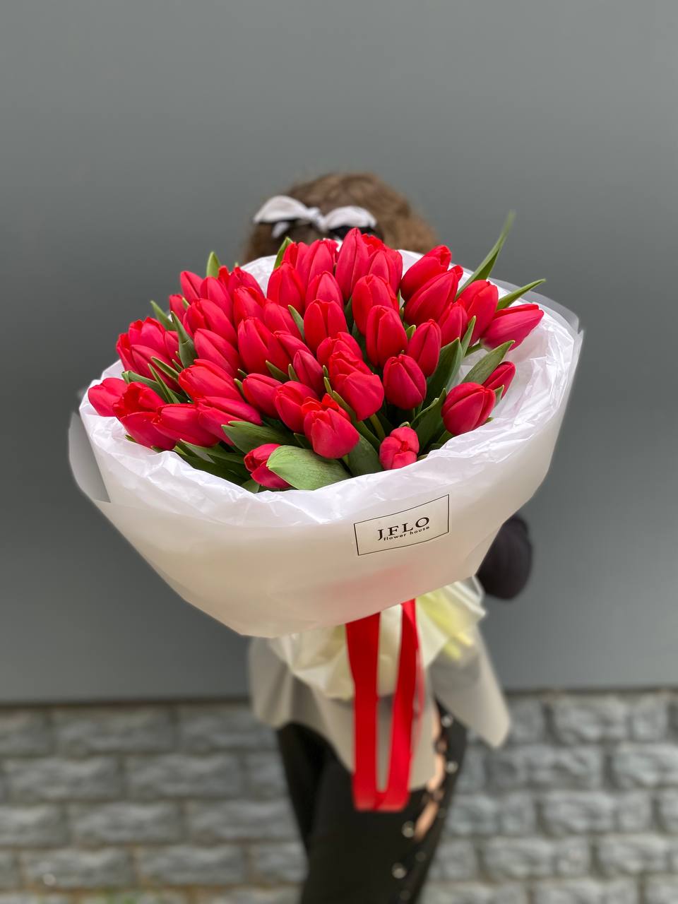 Сто один белоснежный тюльпан собран в плотную охапку с безупречной геометрией. Классическая упаковка сохраняет естественную красоту бутонов и подчёркивает масштаб композиции. Монохромное решение для значимых событий и искренних признаний.