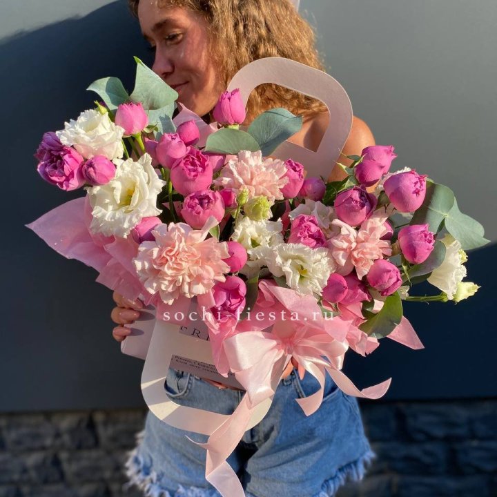 Размер выбирается по повод. Коллеге в Невинномысске — M или L. Юбилей родителей — XL. Выписка из роддома — L в пудровой палитре. Корпоративный юбилей — XXL. Романтический подарок — M или L в яркой палитре.