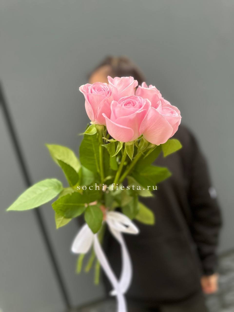 розовая роза- 5 шт, лента. Данная цена доступна при единовременном заказе от 10 шт.