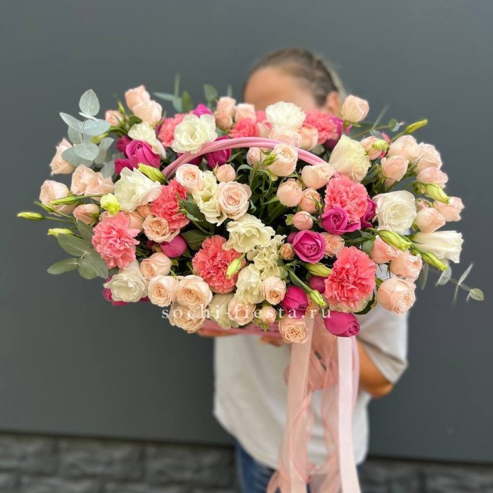 Каждый сезон приносит в Невинномысске свой ассортимент корзин. Весной флорист создаёт корзины с тюльпанами и нарциссами — лёгкие, нежные, полные ощущения обновления. В мае-июне приходят пионы — Sarah Bernhardt, Bowl of Cream, Red Charm — главный флористический праздник. Осенью — хризантема в тёплых гаммах с декоративными ягодами и ветвями. Зимой — хвойные аранжировки с амариллисом для праздничной атмосферы.