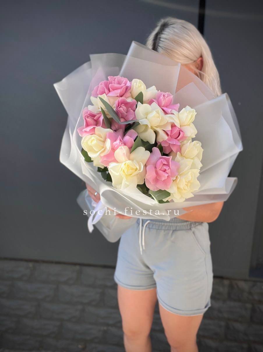 Для заказа товара "15 бело-розовых роз" с доставкой в Невинномысске нажмите