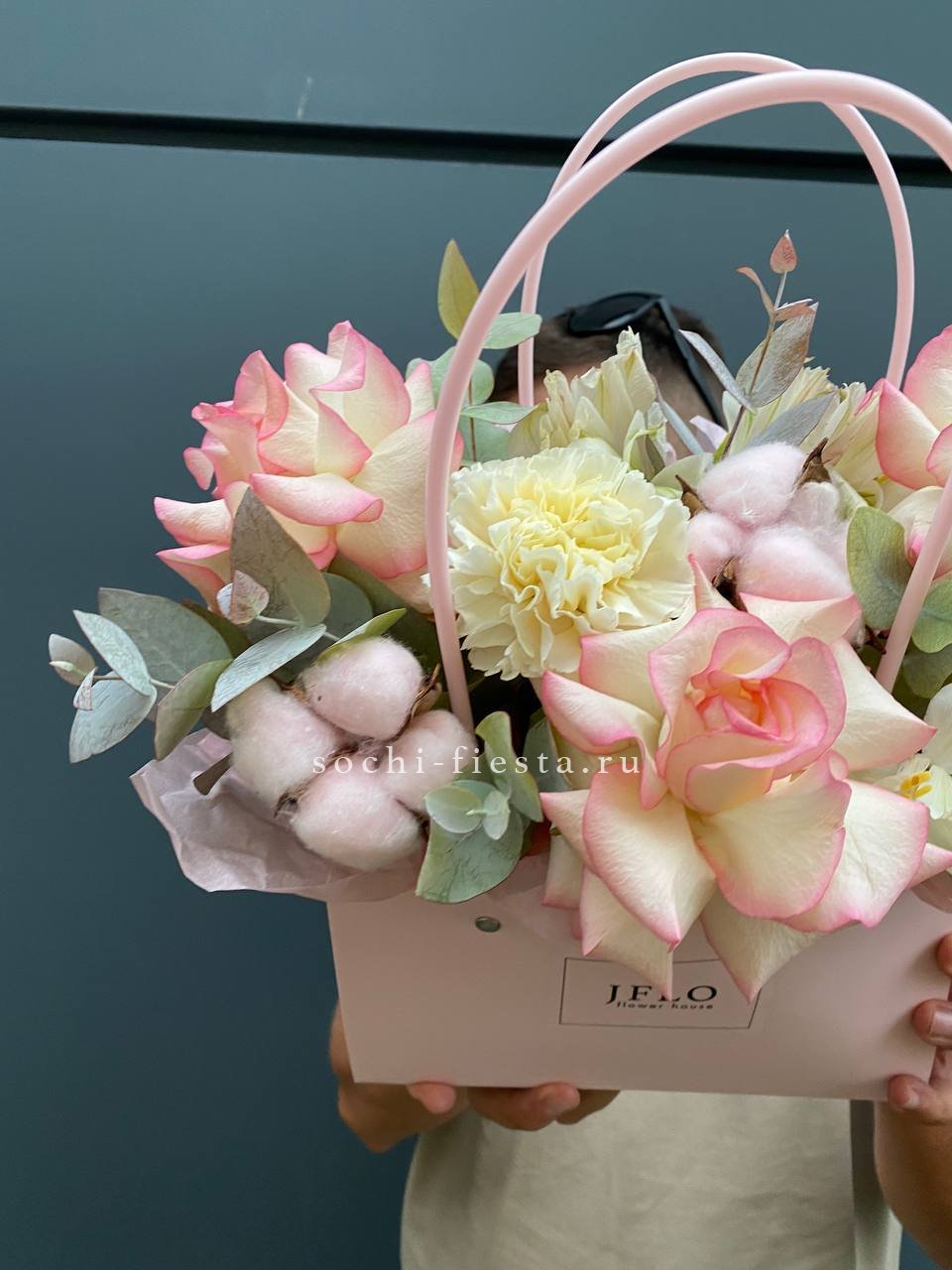 Сто одна роза насыщенного алого оттенка собрана в плетеной корзине. Плотная округлая форма создает впечатление цветочного купола. Практичное решение для масштабного жеста.