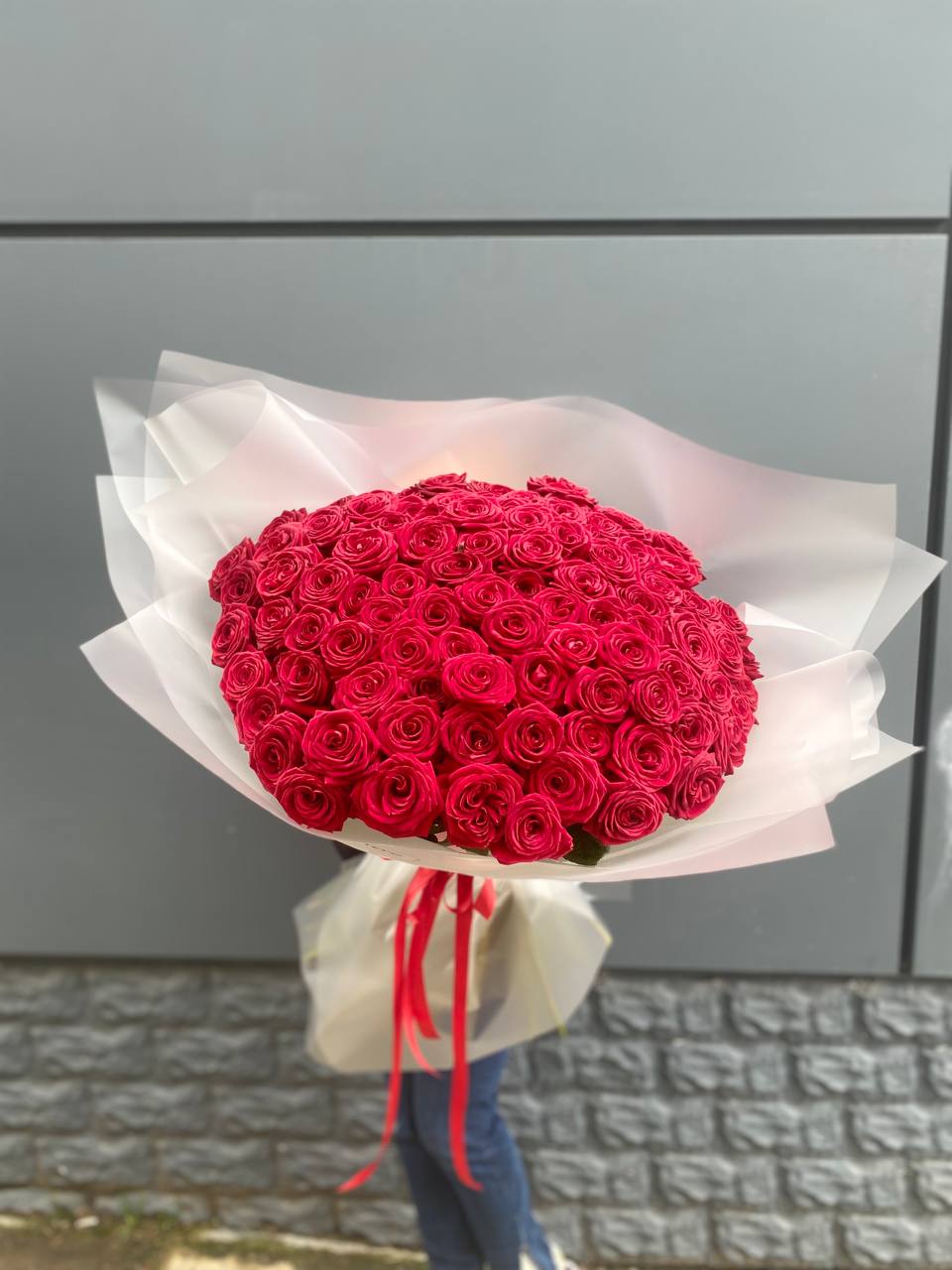101 высокой красной розы