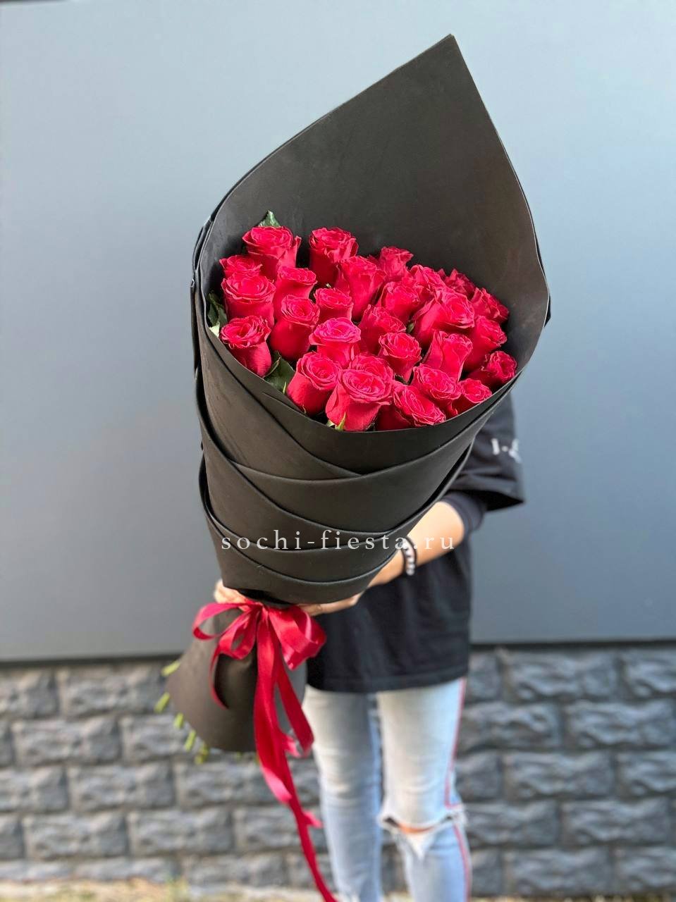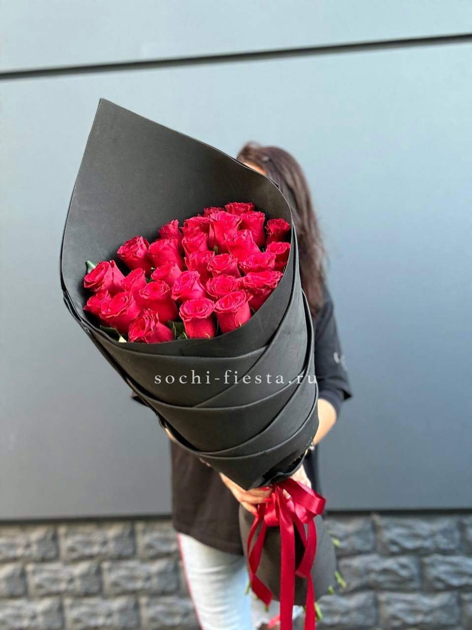 25 высоких красных роз