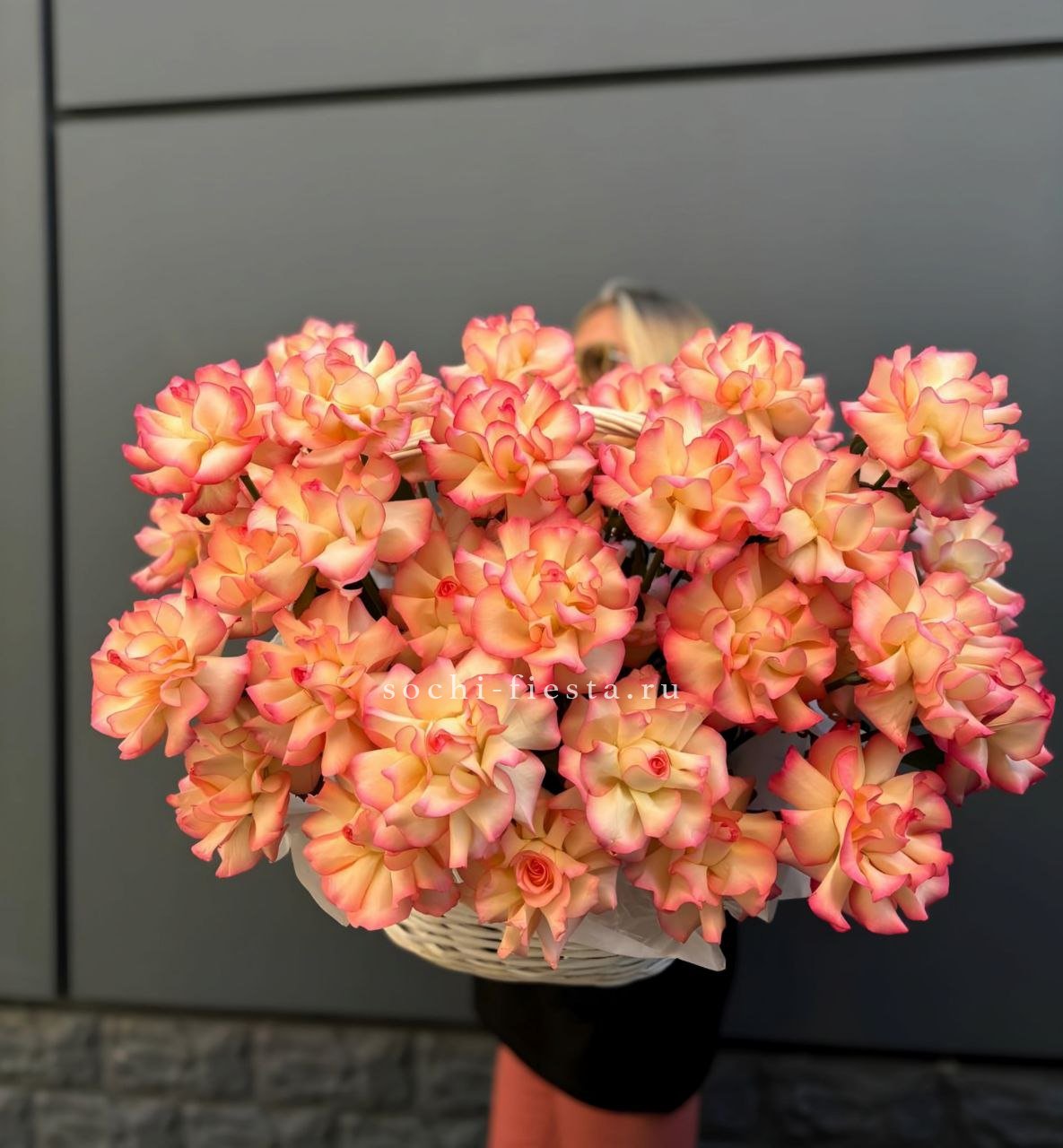 в одной корзине 25 французских роз. На фото сет из 5 корзин.