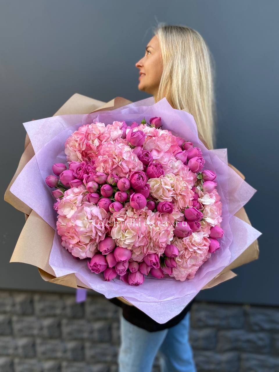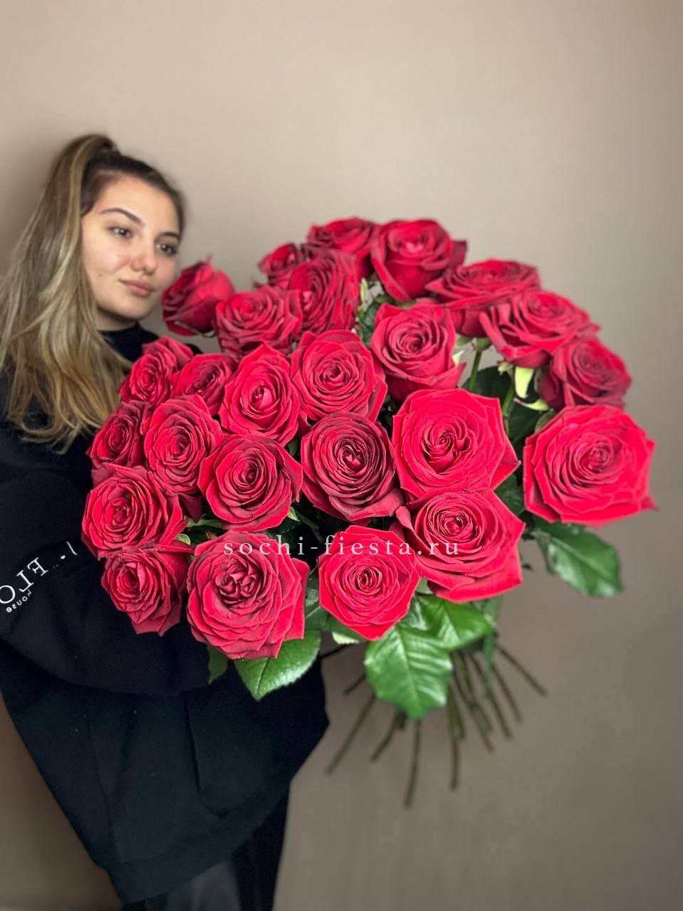 Сто одна белоснежная роза собрана в монументальный букет классической формы. Высокие стебли образуют графичный силуэт, а плотное расположение бутонов создаёт впечатляющий объём. Лаконичная лента завершает композицию.