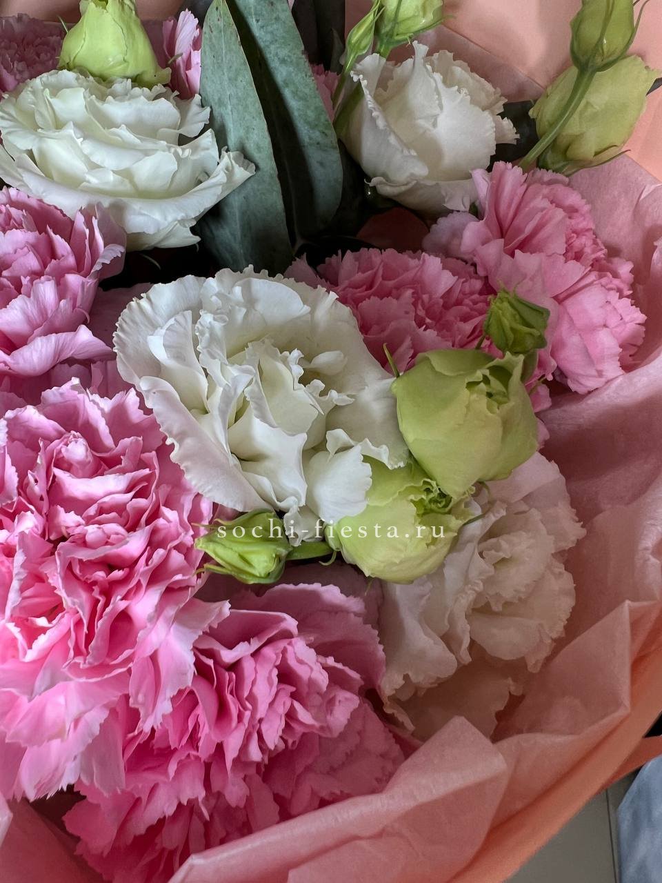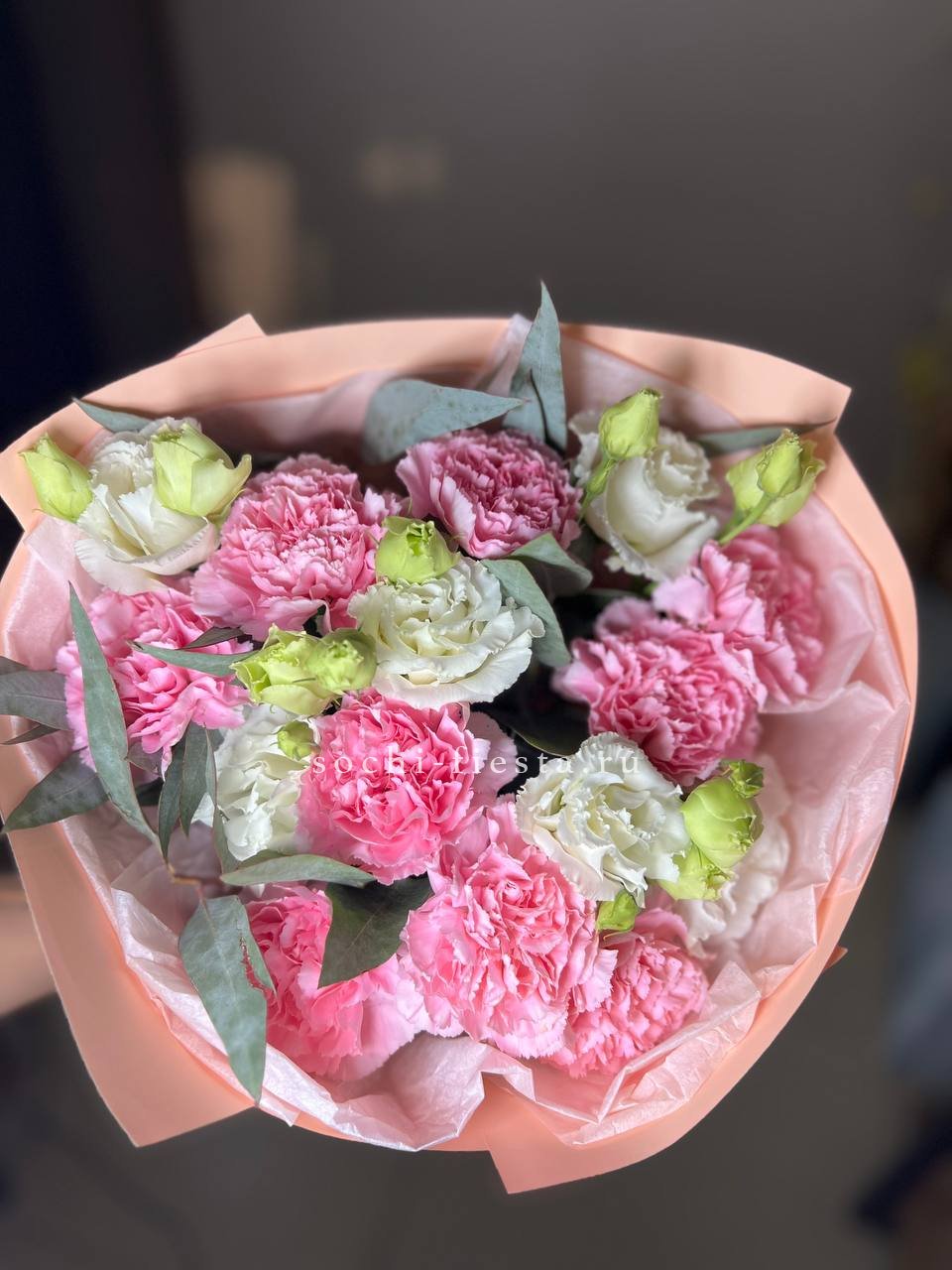 Для заказа товара "Букет гвоздик и эустом "Сири"" с доставкой в Невинномысске нажмите